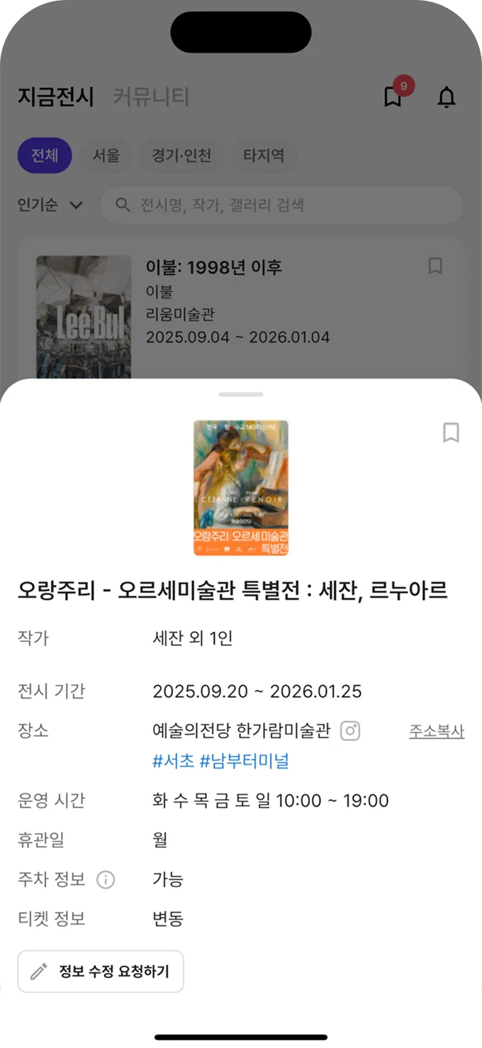 방문할 전시는 북마크로 저장